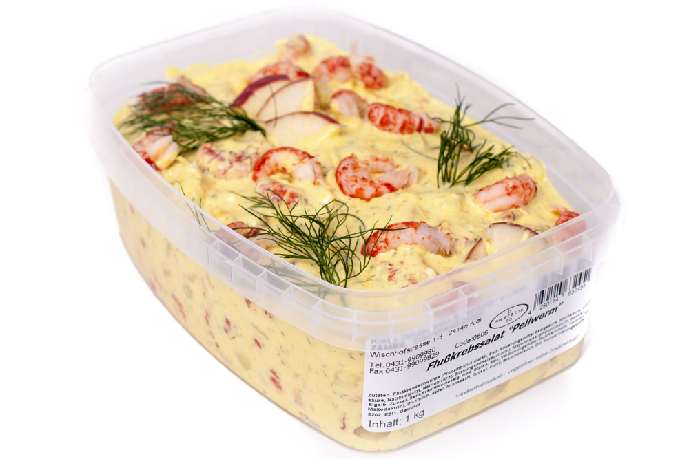 Flusskrebsfleisch, Äpfel, Ananas, Curry, Knoblauch, Dill, Mayonnaise