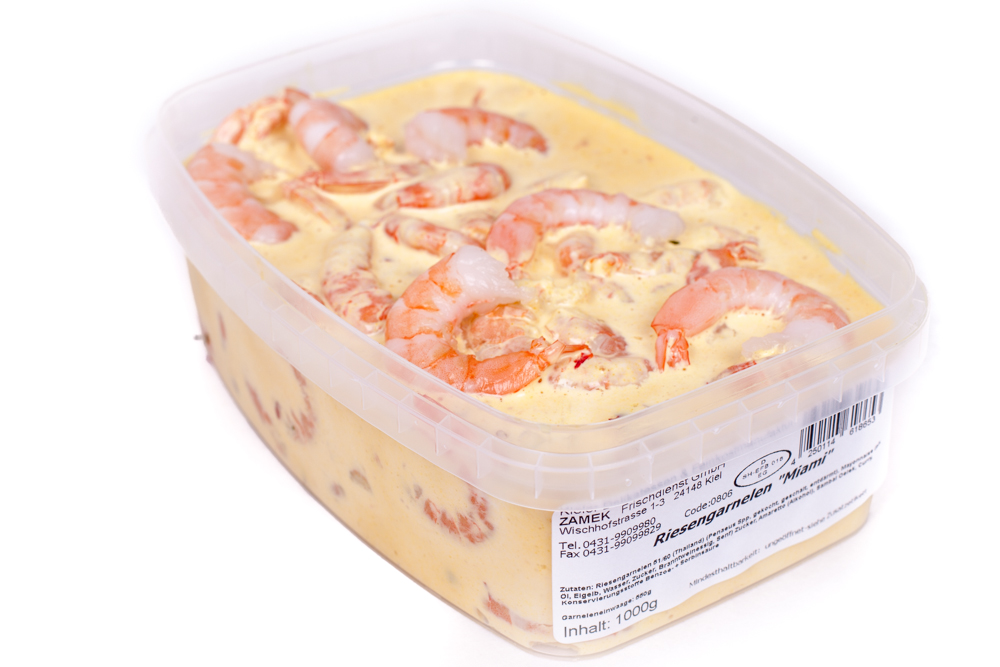 Riesengarnelen (55%), Curry, Amaretto, Sambal Oelek, Mayonnaise