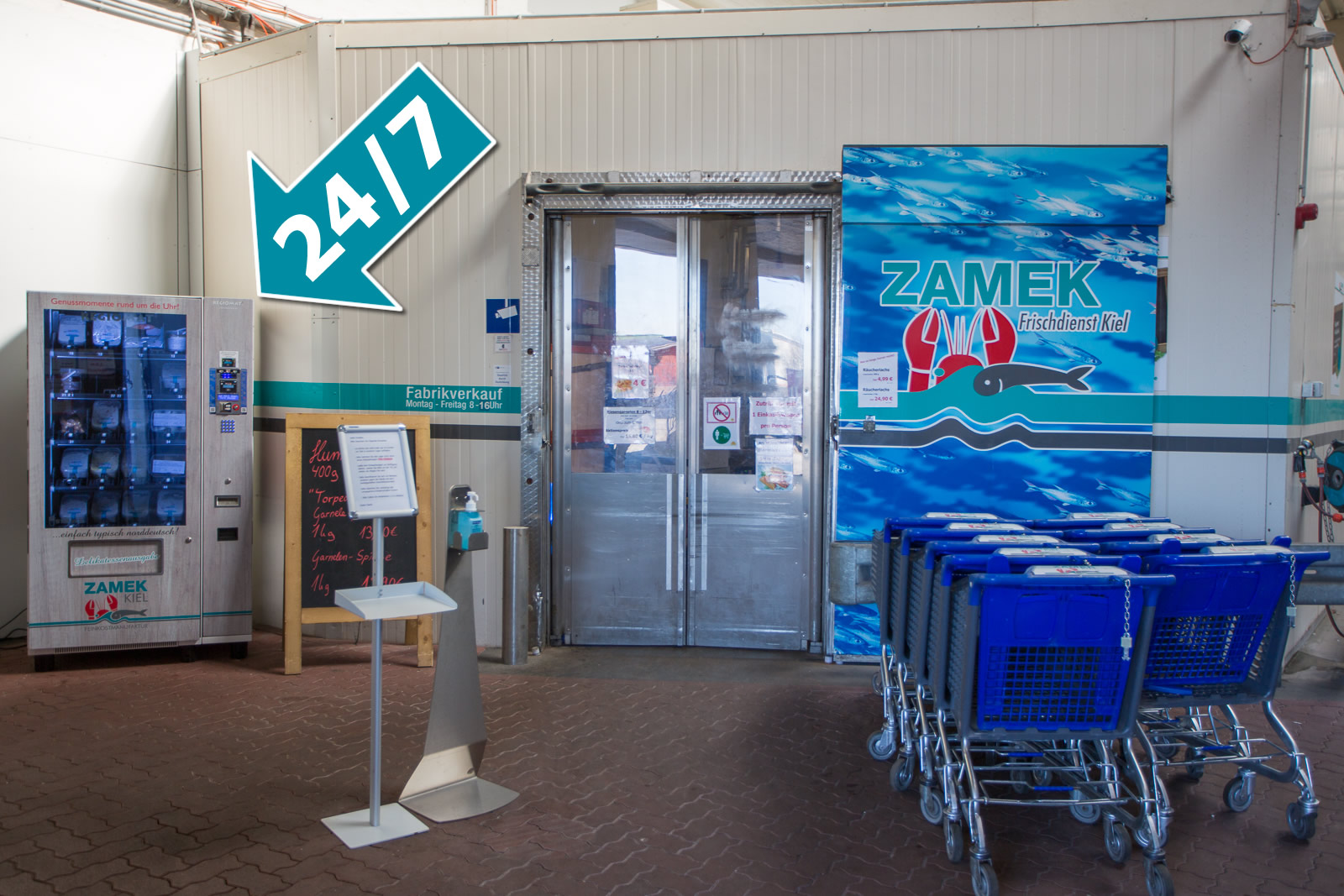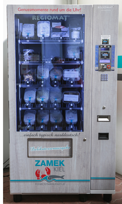 Genau zu diesem Zweck haben wir einen "Regiomaten" für Sie angeschafft, den wir täglich ggf. mehrmals auffüllen - je nach Bedarf. Sie finden ihn direkt links neben dem Eingang unseres Fabrikverkaufs (siehe Foto).