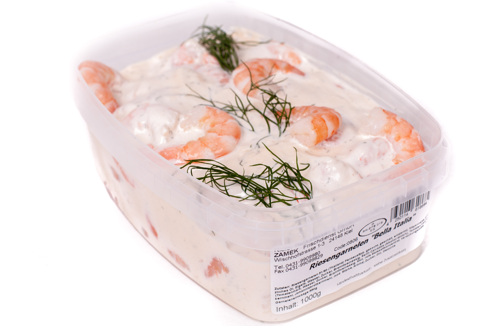Riesengarnelen (55%), Mayonnaise, Calvados, Dill